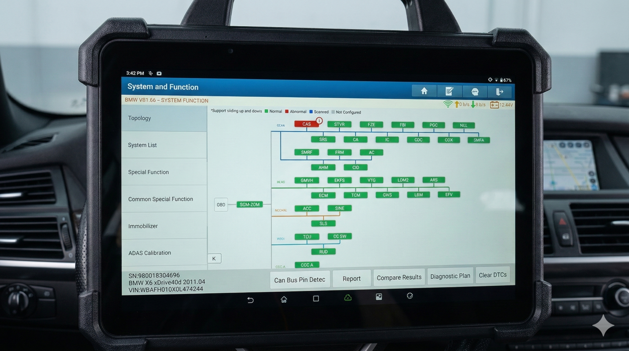 • Diagnoză auto completă pe întreg ansamblul motor, cu parametri live și teste active pentru identificarea exactă a defectului